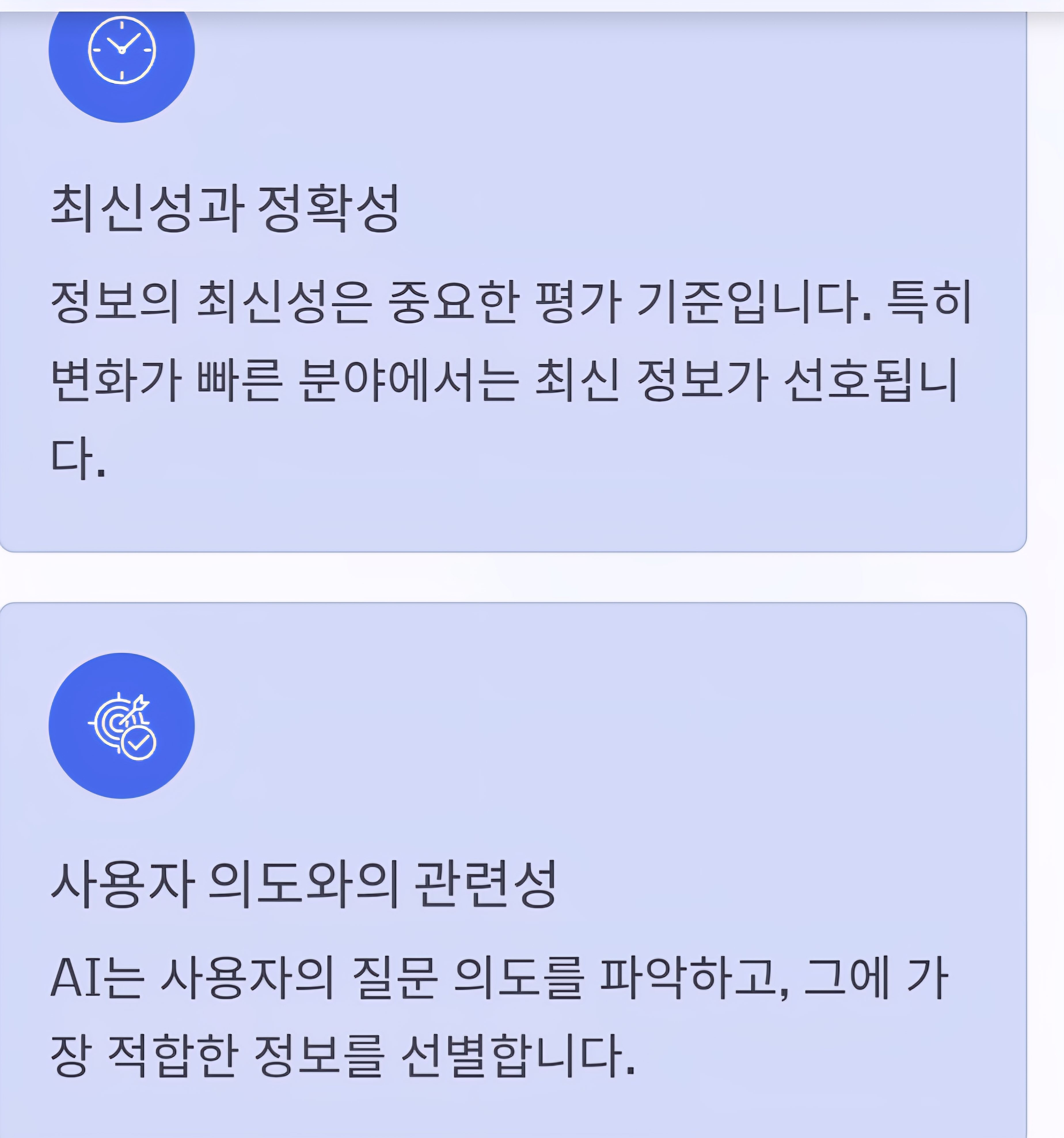 AI는 이 요소들을 종합적으로 판단해 해당 콘텐츠를 답변에 사용할지 결정합니다.